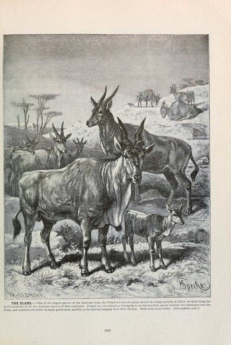 Brehm's Life of animals : Volume 1, MammaliaChicago :Marquis,1895.|"Animal behavior" Mammals "American Museum of Natural History Library" |eland | taxonomy:binomial=Taurotragus oryx | Common Eland |