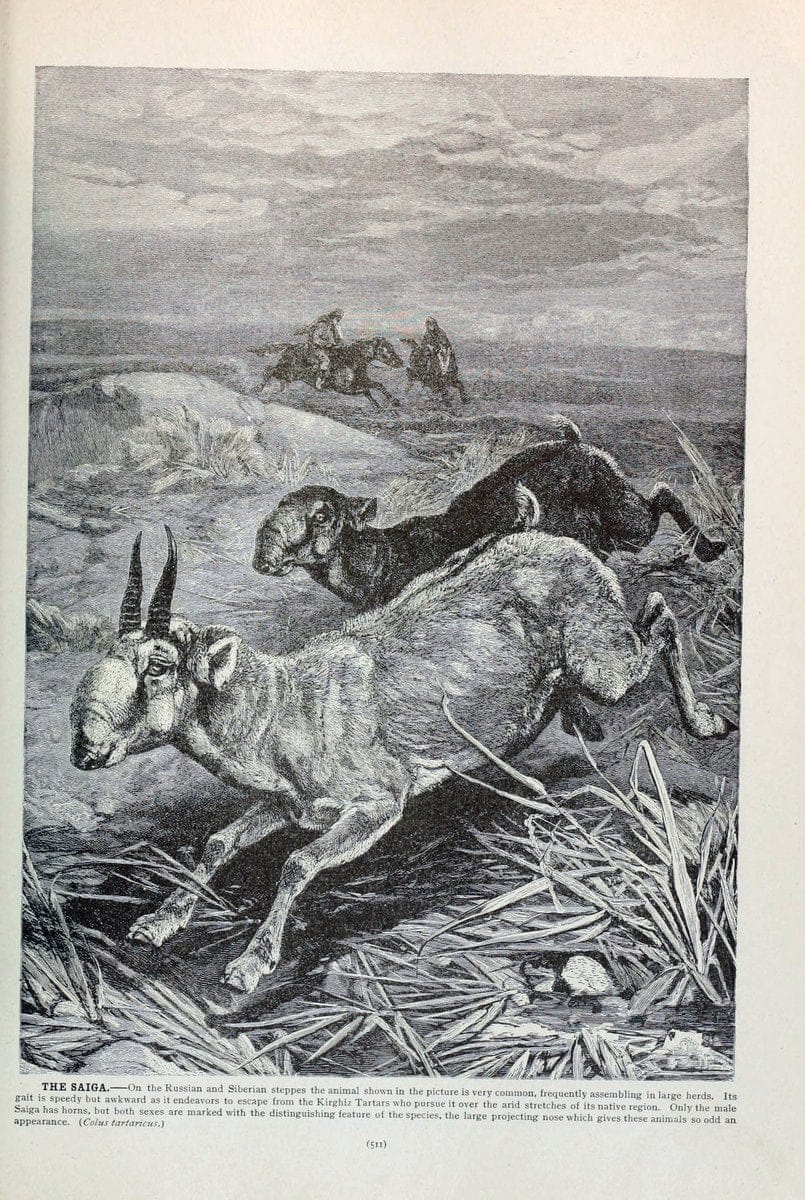 Brehm's Life of animals : Volume 1, MammaliaChicago :Marquis,1895.|"Animal behavior" Mammals "American Museum of Natural History Library" |saiga | taxonomy:binomial=Saiga tatarica |