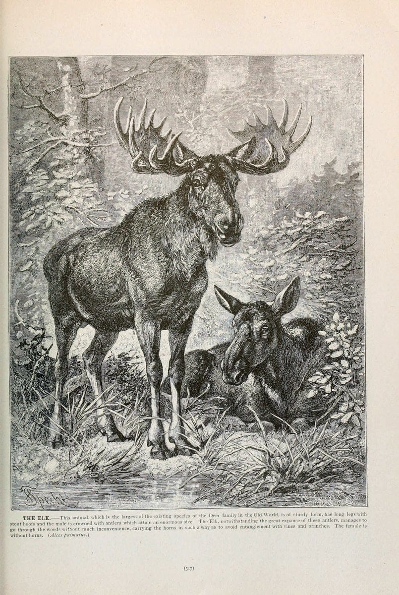 Brehm's Life of animals : Volume 1, MammaliaChicago :Marquis,1895.|"Animal behavior" Mammals "American Museum of Natural History Library" |elk moose | taxonomy:binomial=Alces alces | Eurasian Elk |