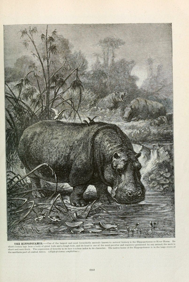 Brehm's Life of animals : Volume 1, MammaliaChicago :Marquis,1895.|"Animal behavior" Mammals "American Museum of Natural History Library" |hippo hippoptumus | taxonomy:binomial=Hippopotamus amphibius | Hippopotamus | Hippopotamus amphibius in art |