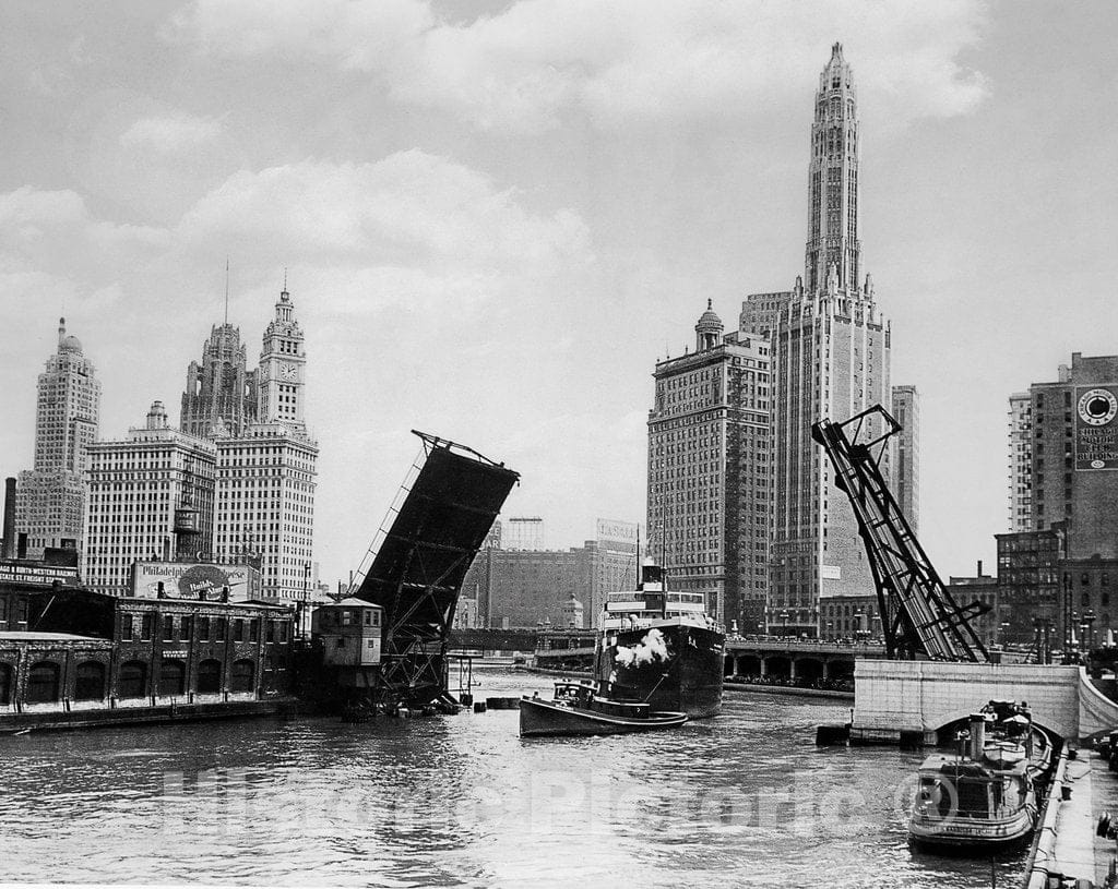 Chicago Historic Black & White Photo, Towing a Steamer Through the Chicago River, c1904 -