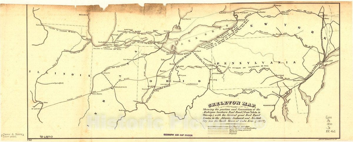 Historic 1850 Map - Skeleton map, Showing The Position and Connections of The Michigan Southern Rail Road (from Toledo to Chicago) with The Several Great Rail Road Routes to The Atlantic