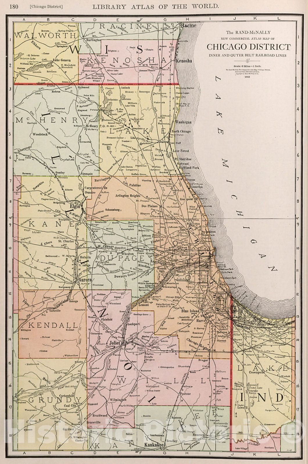 Historic Map - Chicago District Inner and Outer Belt Railroad Lines, 1914, Rand McNally & Company - Vintage Wall Art