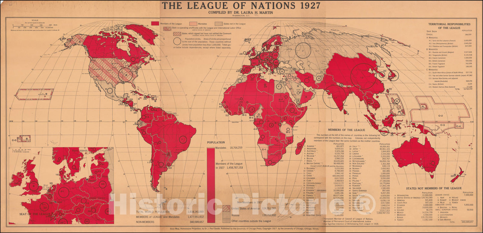 Historic Map : The League of Nations 1927. Compiled By Dr. Laura H. Martin, 1927, University of Chicago Press, Vintage Wall Art
