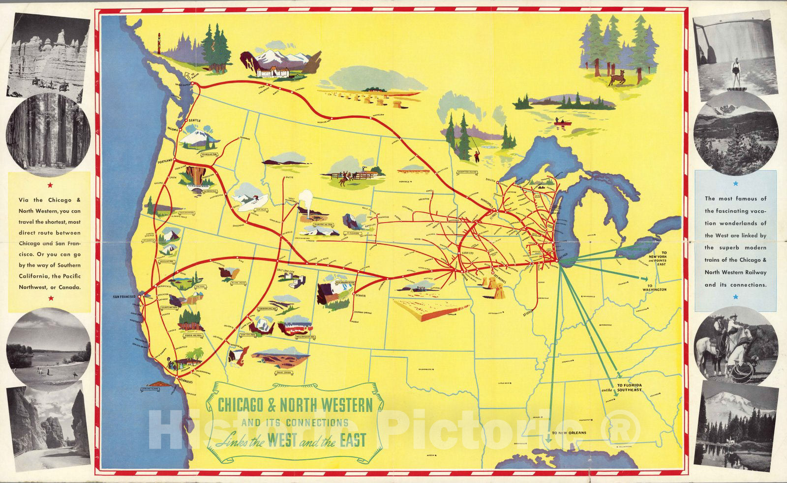 Historic Map : Pocket Map, Chicago & North Western and connections links the West and the East 1939 - Vintage Wall Art