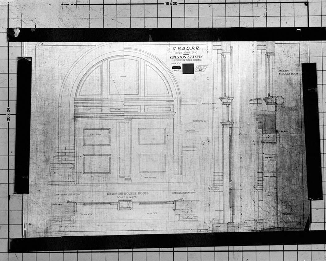 14. Photocopy,exterior double doors - Chicago, Burlington & Quincy Railroad, West Iowa Division, Creston Station, 116 West Adams, Creston, Union County, IA
