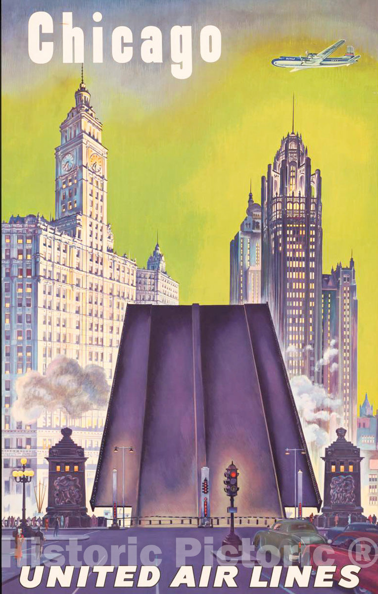 Vintage Poster - Chicago - United Air Lines, Historic Wall Art