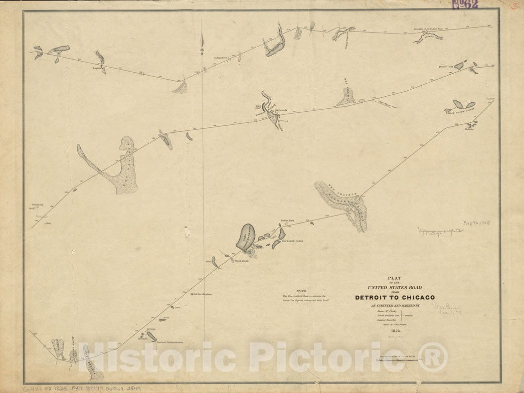 Historical Map, 1825 Plat of The United States Road from Detroit to Chicago [Sheet 3], Vintage Wall Art