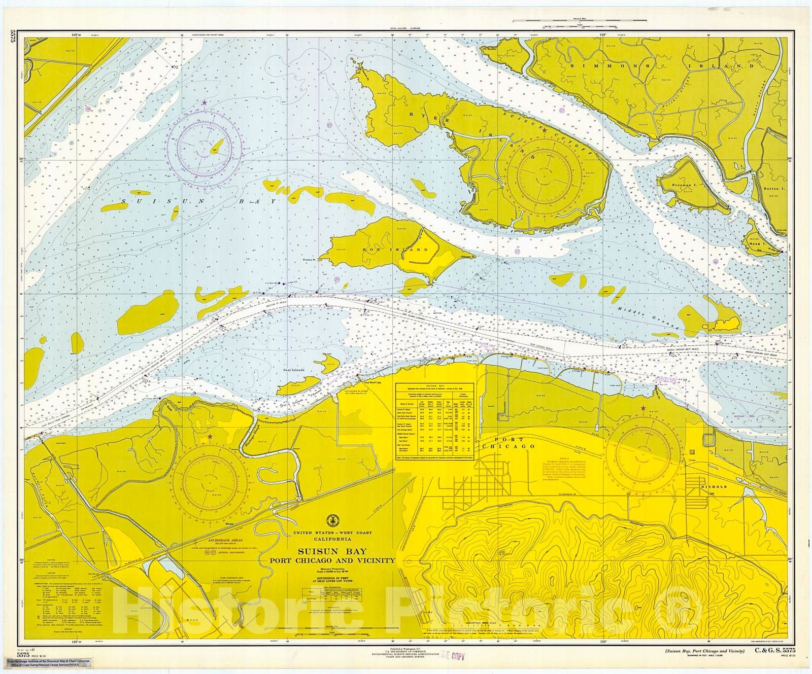 Historic Nautical Map - Suisun Bay, Port Chicago & Vicinity, 1967 NOAA Chart - California (CA) - Vintage Wall Art