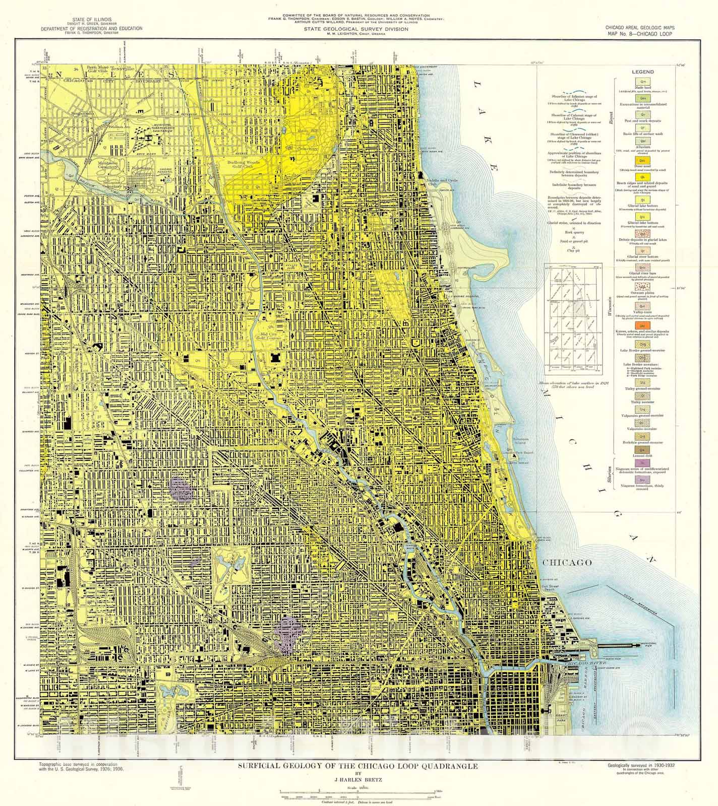Map : Surficial geology of the Chicago region: Chicago Loop Quadrangle, 1939 Cartography Wall Art :
