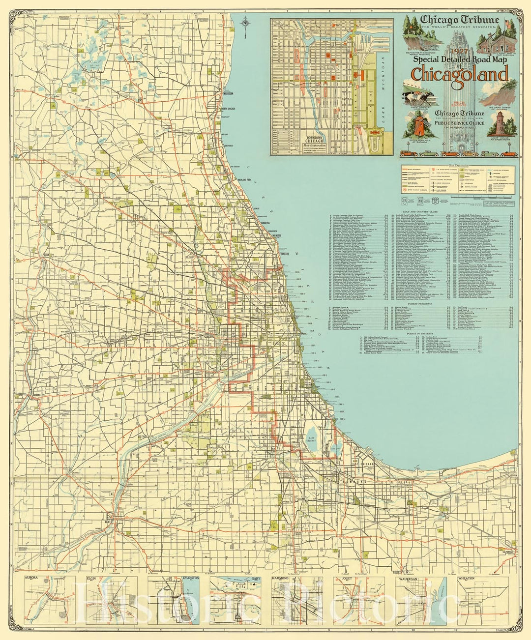 Map : Chicago, Illinois 1927 2, 1927 special detailed road map of Chicagoland , Antique Vintage Reproduction