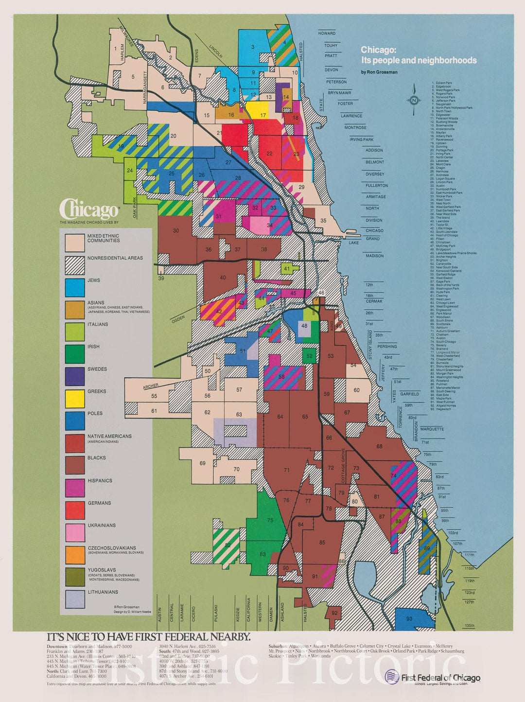Map : Chicago, Illinois 1979 2, Chicago, its people and neighborhoods , Antique Vintage Reproduction