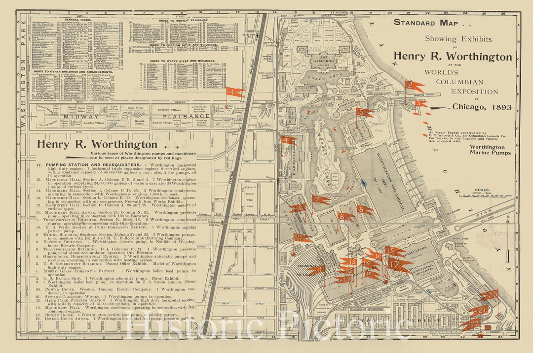 Map : Chicago World's Fair 1893 1, Handy map of Chicago and the World's Fair , Antique Vintage Reproduction
