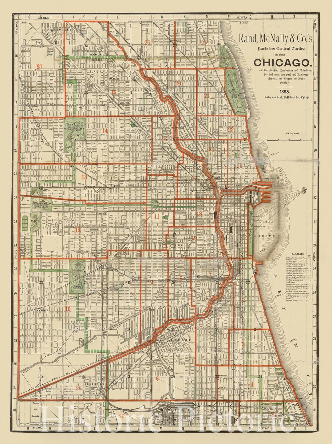 Map : Chicago, Illinois 1893 (German) 2, Antique Vintage Reproduction