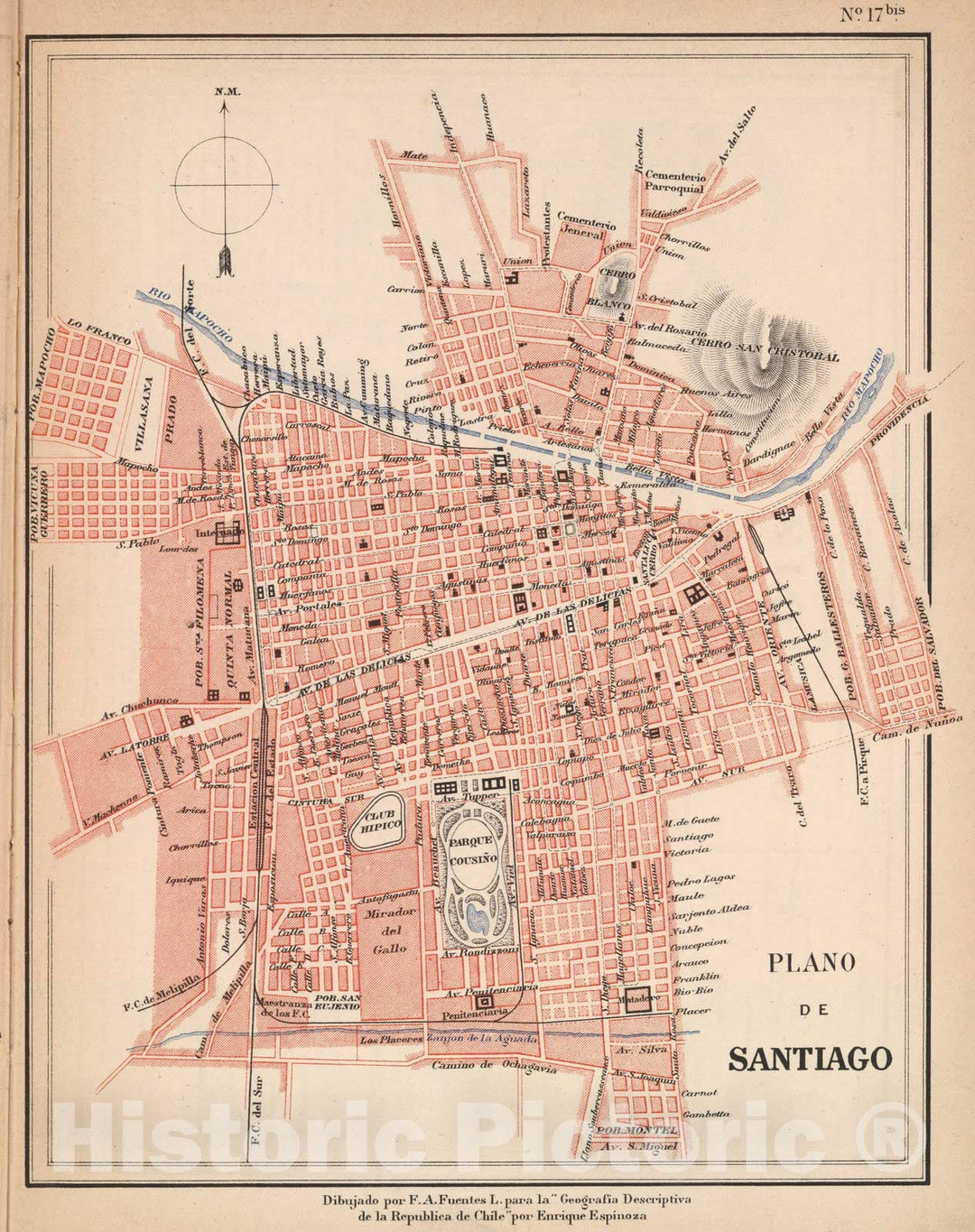 Historic Map : Chile, Mapa No. 17 bis. Plano de Santiago, 1903 , Vintage Wall Art