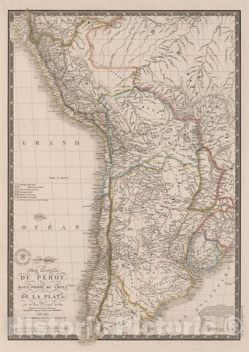 Historic Map : Chile, Carte Generale du Perou du Haut-Perou, du Chili et de la Plata, 1843 Atlas , Vintage Wall Art