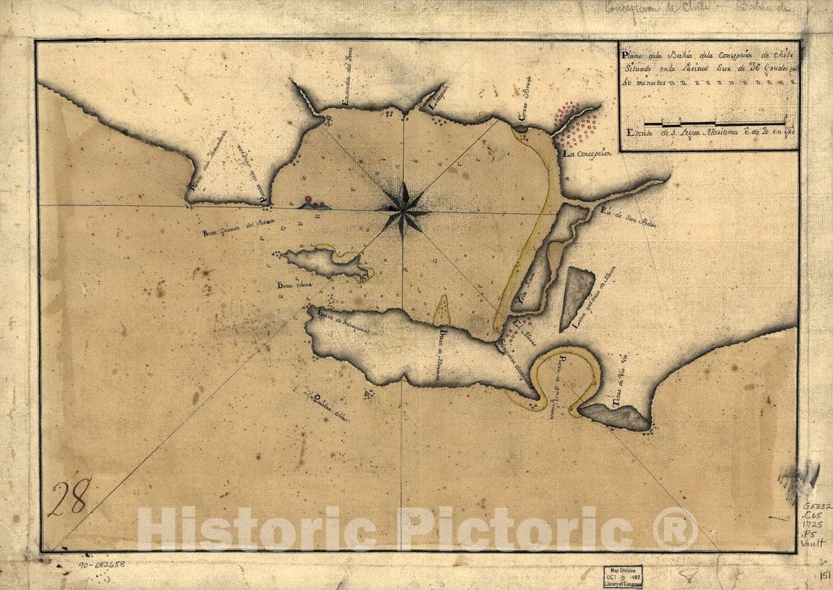 Historic 1725 Map - Plano de la BahÃa de la Concepción de Chile situado en la latitud sur DE 36 grados 40 minutos.