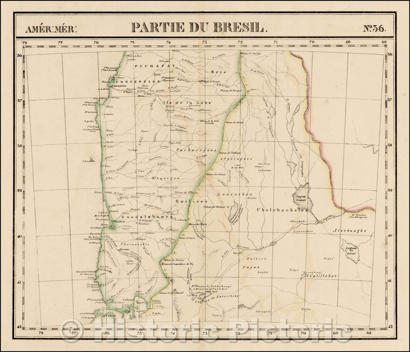 Historic Map - Amer. Mer. No. 36. Partie Du Bresil [and Chili]/Bitter. Wed Part No. 36. From Brazil [and Chile], 1825, Philippe Marie Vandermaelen - Vintage Wall Art