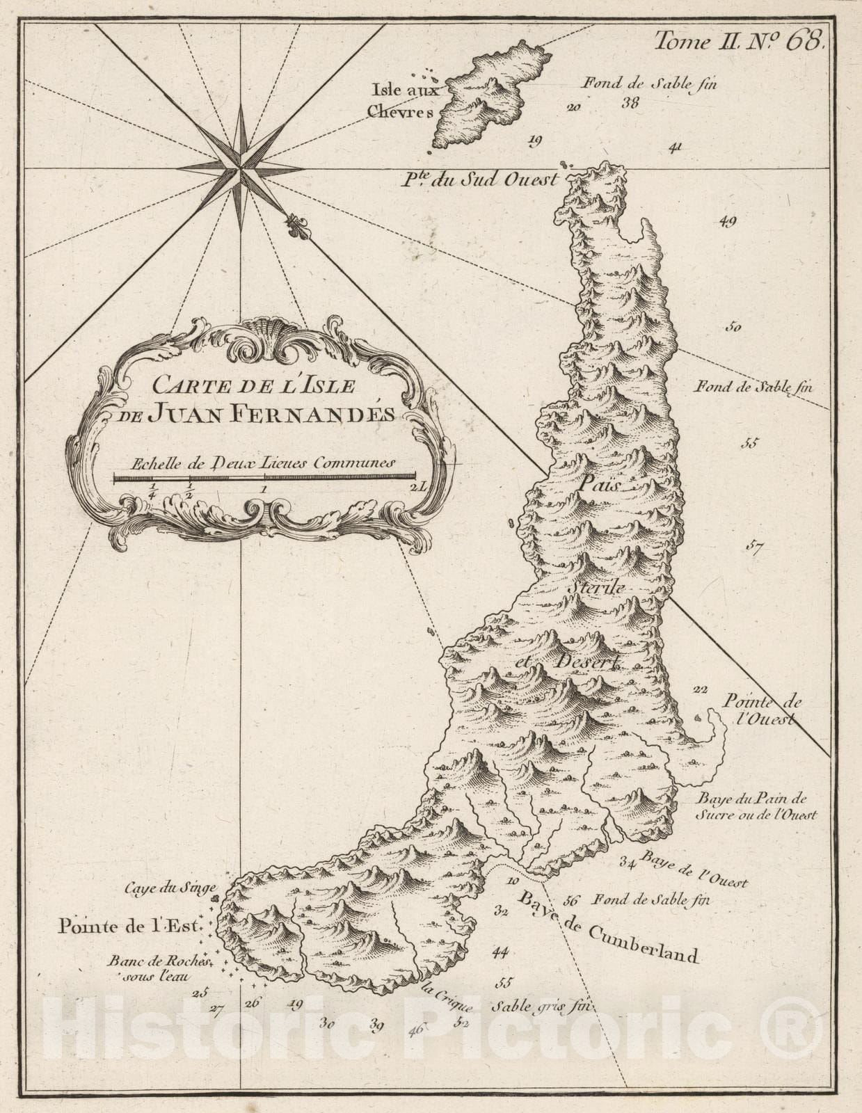Historic Map : Chile, Juan Fernández Islands (Chile) 1764 Carte de I'isle do Juan Fernanda. , Vintage Wall Art