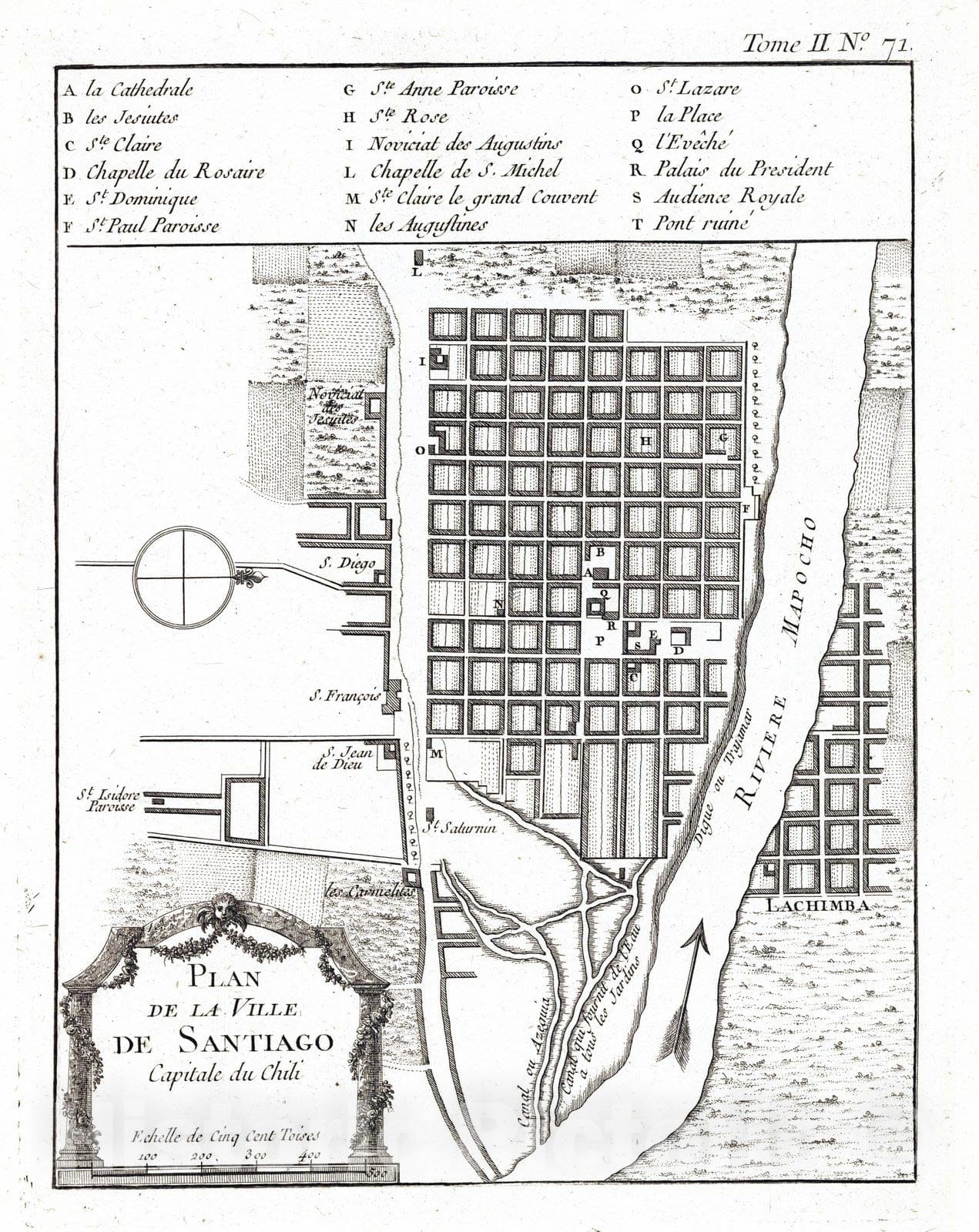 Historic Map : Chile , Santiago (Chile), 1764 Plan de la ville de Santiago, capitale du Chili. , Vintage Wall Art