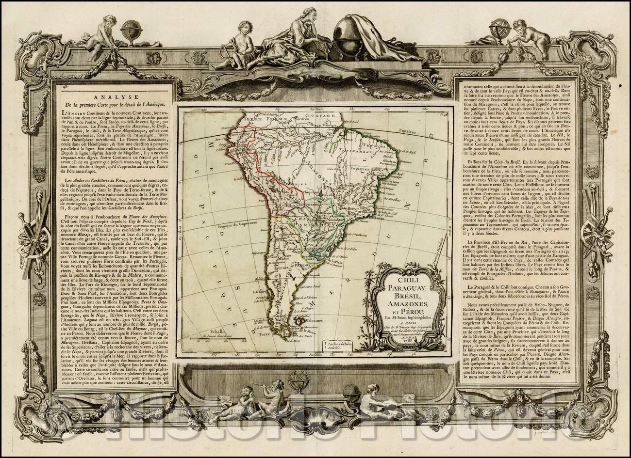 • .Historic Map - Chili, Paraguay, Bresil, Amazones et Perou/Chile, Paraguay, Brazil, Peru and the Amazon. 1766, 1766, Louis Brion de la Tour - Vintage Wall Art