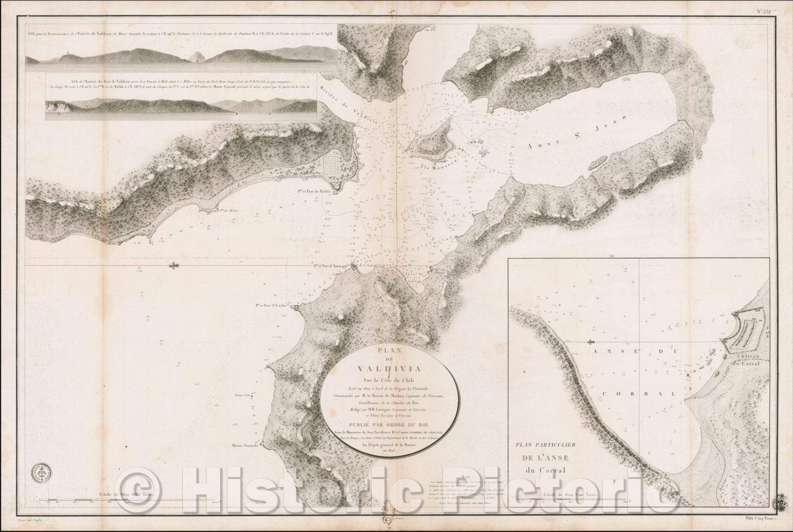 Historic Map - Plan de Valdivia Sur la Cote du Chili Leve en 1822 a bord de la Fregate la :: Valdivia On the Approval of Chile Leve, 1825 - Vintage Wall Art