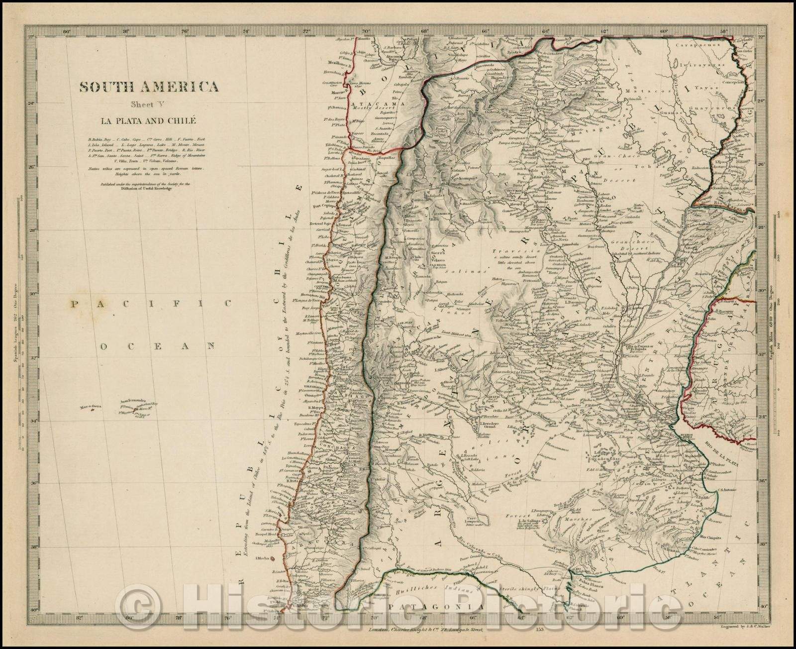 Historic Map - South America Sheet V La Plata and Chile, 1849, SDUK - Vintage Wall Art