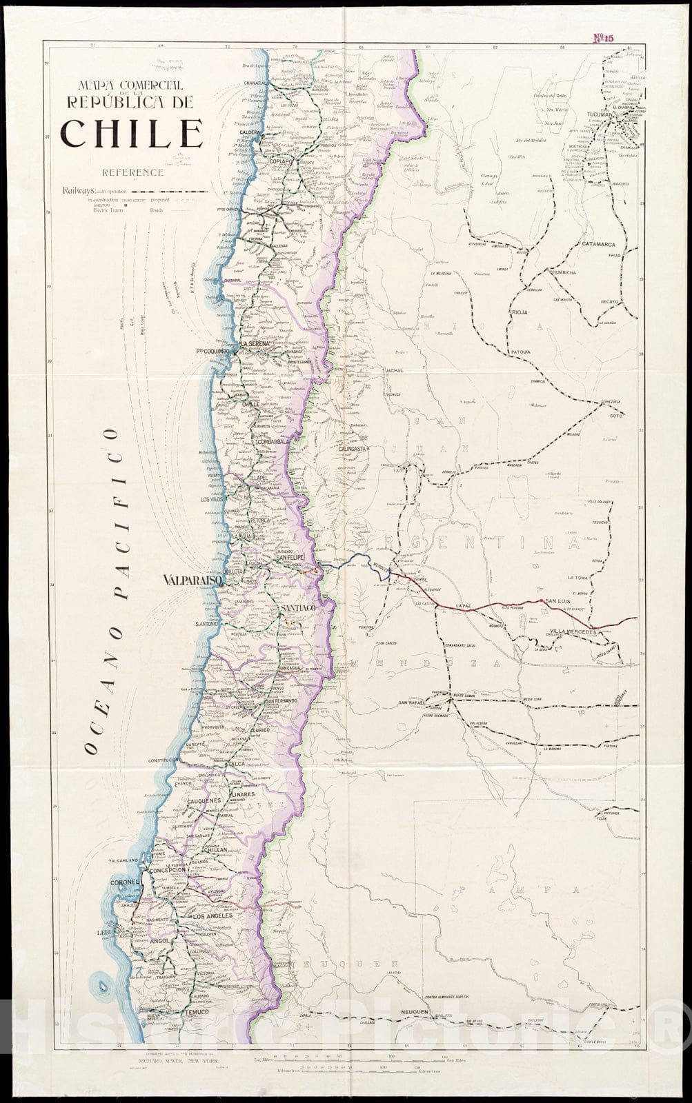 Historical Map, 1917 Mapa comercial de la RepuIblica de Chile, Vintage Wall Art