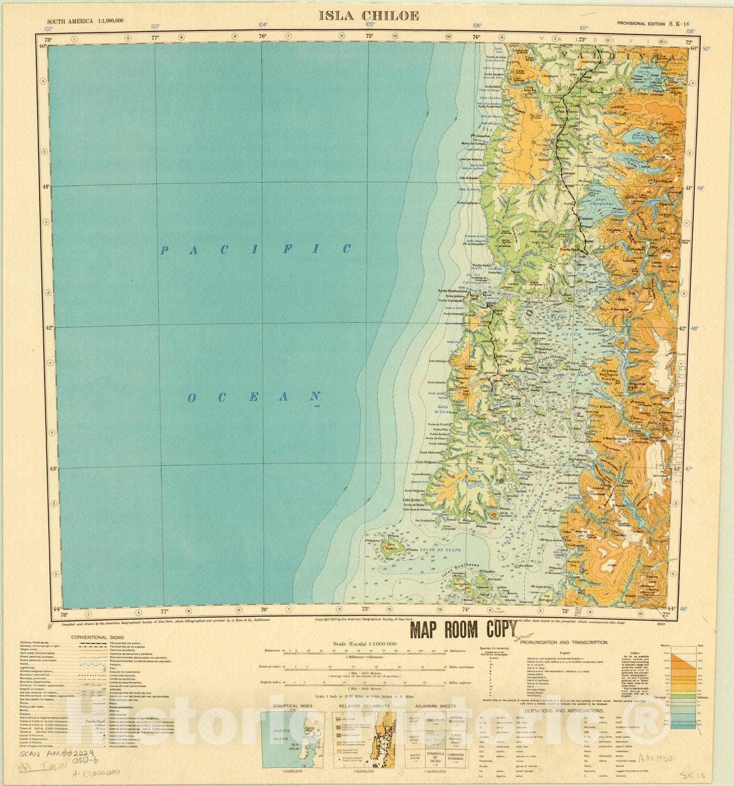 South America 1:1,000,000 Isla Chiloe S.K. 18 / compiled and drawn by the American Geographical Society of New York ; photo-lithographed and printed by A. Hoen & Co., Baltimore