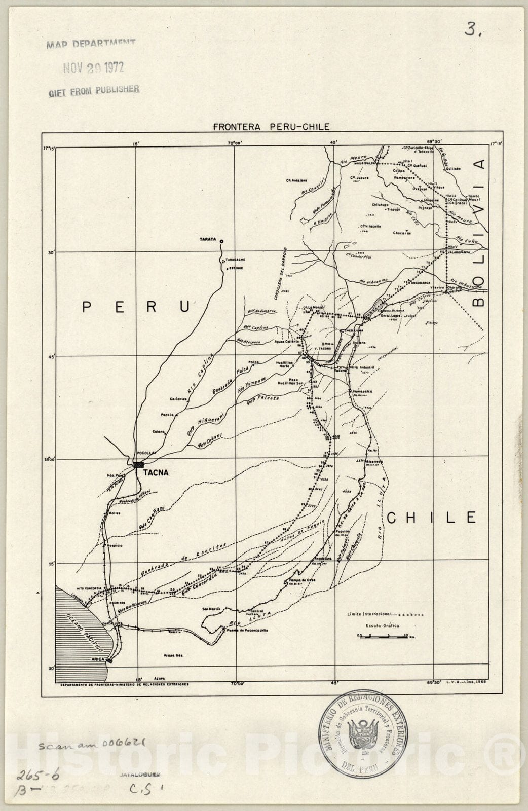 Map : Peru 1968 2, Frontera Peru-Bolivia, Brasil, Chile, Colombia, Ecuador, , Antique Vintage Reproduction