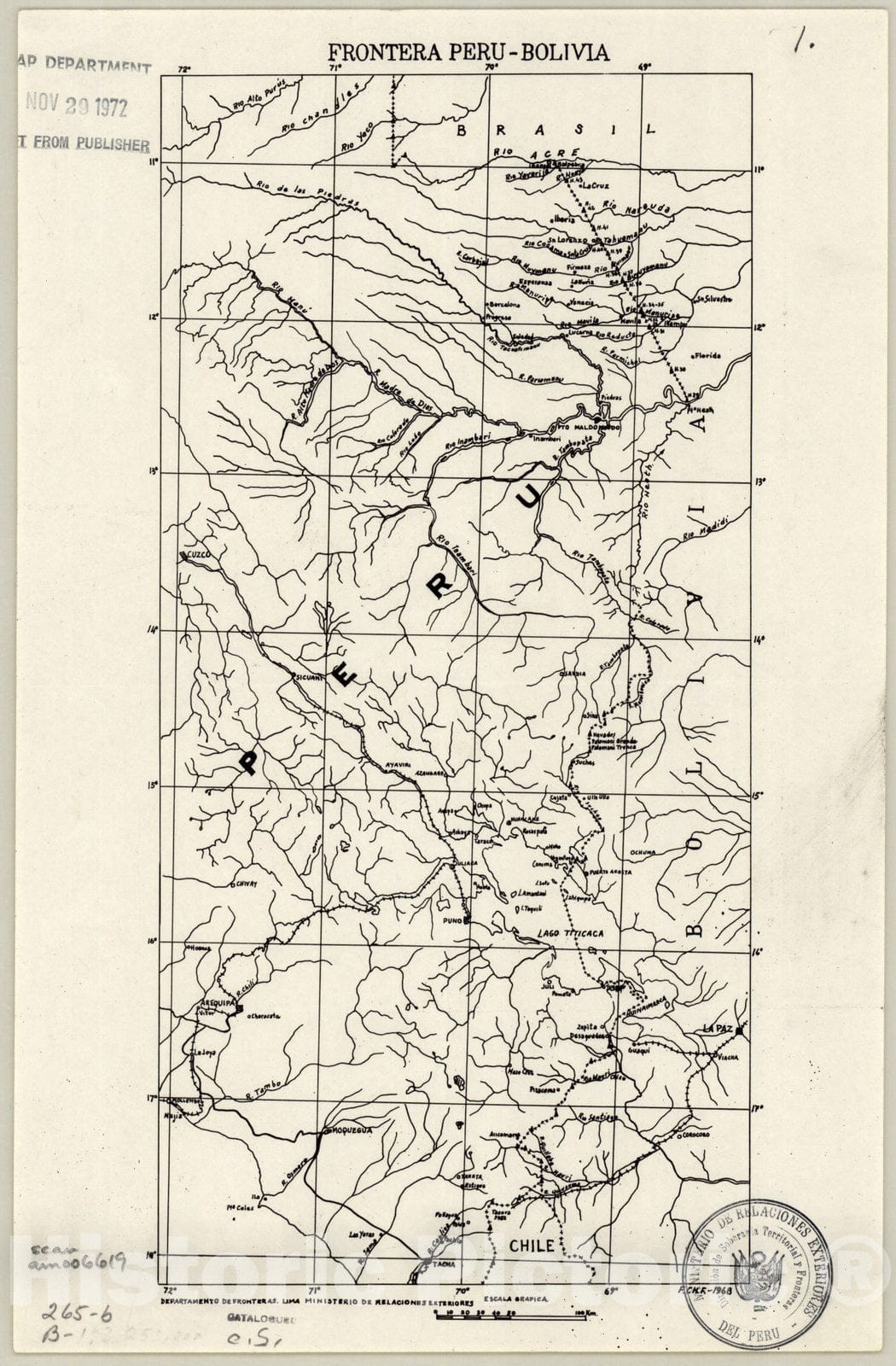 Map : Peru 1968 4, Frontera Peru-Bolivia, Brasil, Chile, Colombia, Ecuador, , Antique Vintage Reproduction