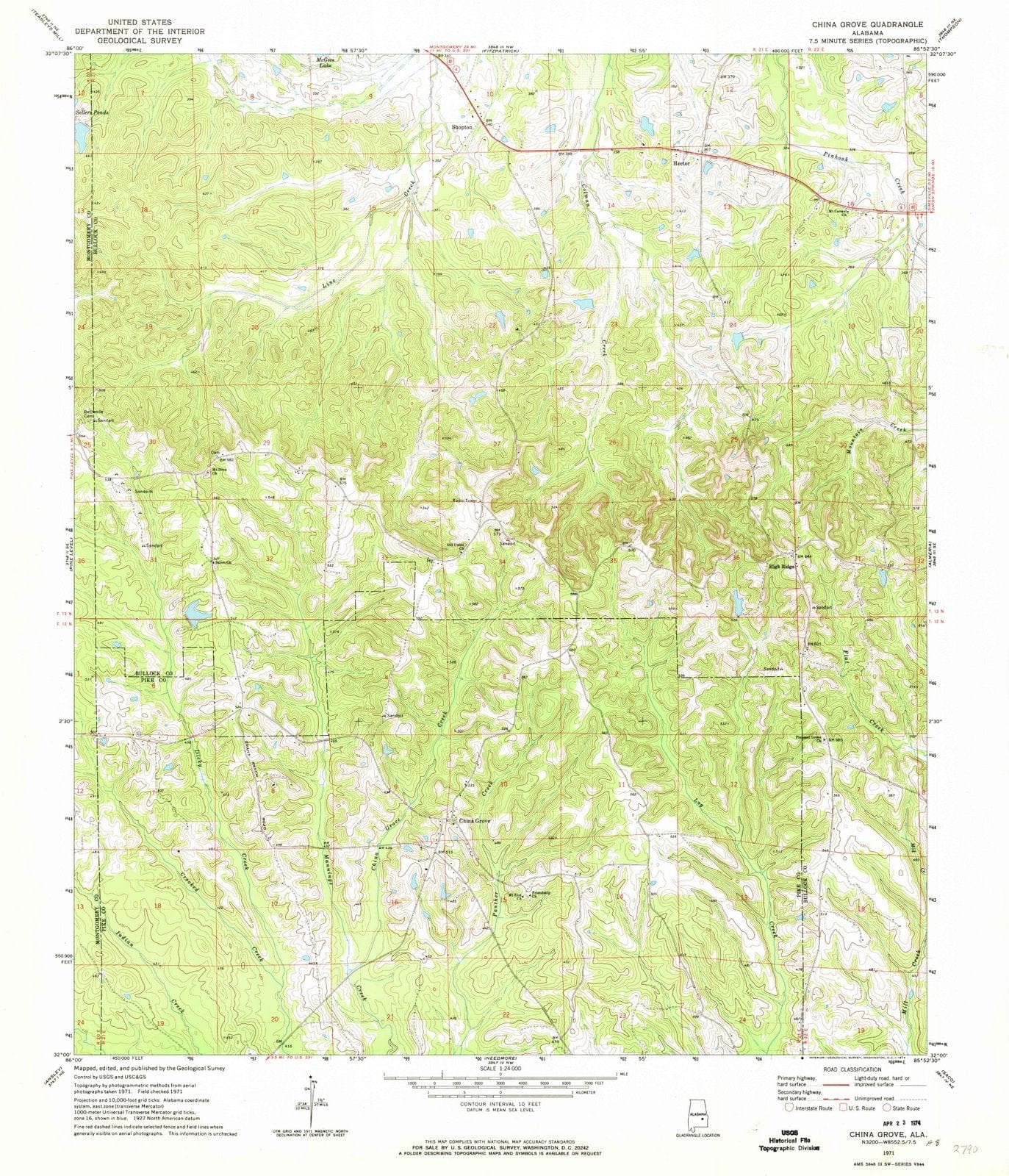 1971 China Grove, AL - Alabama - USGS Topographic Map