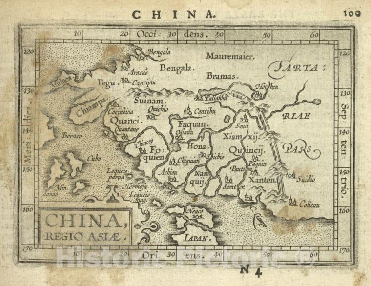 Historic 1603 Map - China, Regio Asiae. - Norway - China - Abraham Ortelius His Epitome Of The Theater Of The Worlde.