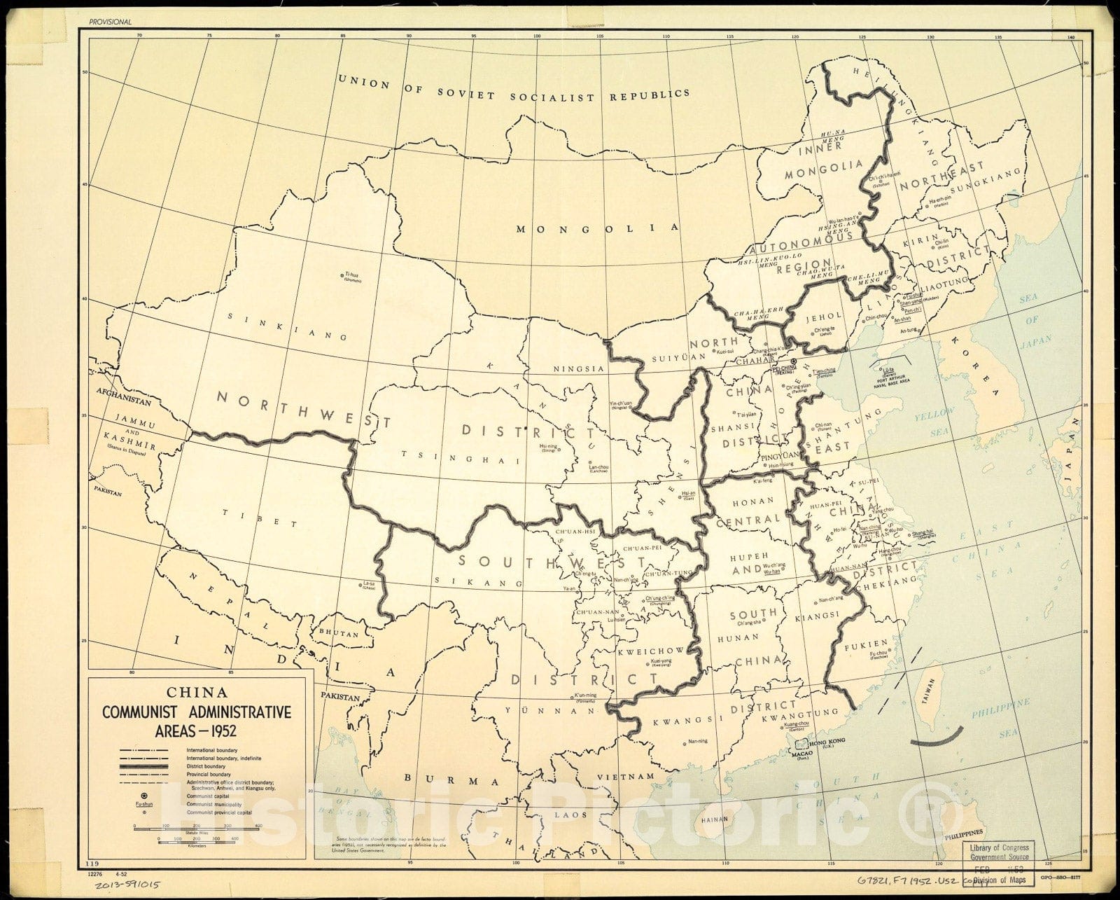• .Historic 1952 Map - China, Communist Administrative Areas 1952.