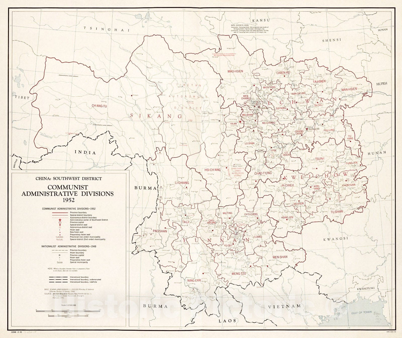 • Historic 1952 Map - China: Southwest District Communist Administrative divisions, 1952. 2-53.