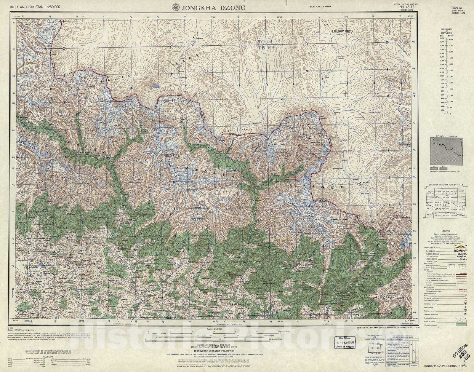 Historic 1955 Map - India and Pakistan 1:250,000. - Jonkha Dzong, China, Nepal 1959