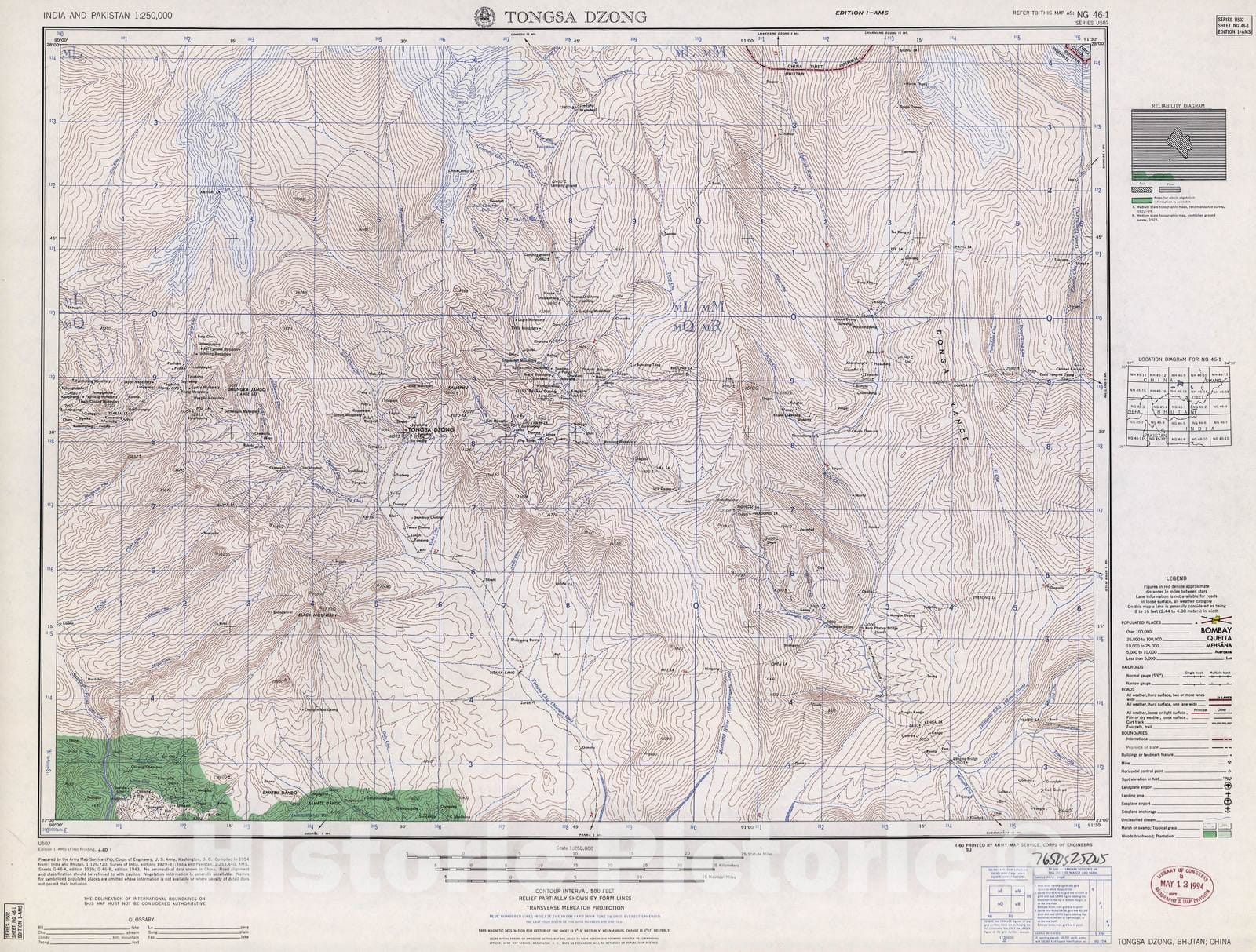 • Historic 1955 Map - India and Pakistan 1:250,000. - Tongsa Dzong,Bhutan, China, 1960