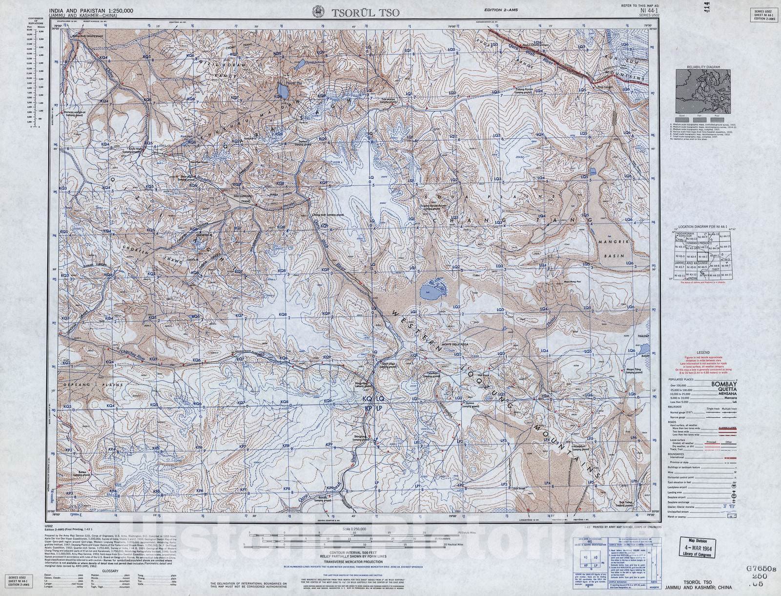 Historic 1955 Map - India and Pakistan 1:250,000. - Tsorul Tso, Jammu and Kashmir, China 1959