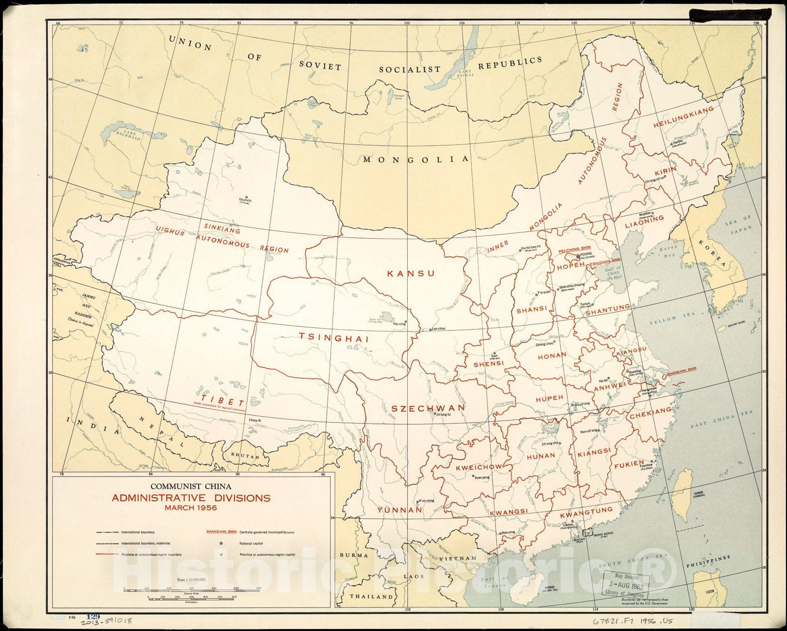 Historic 1956 Map - Communist China, Administrative divisions, March 1956.