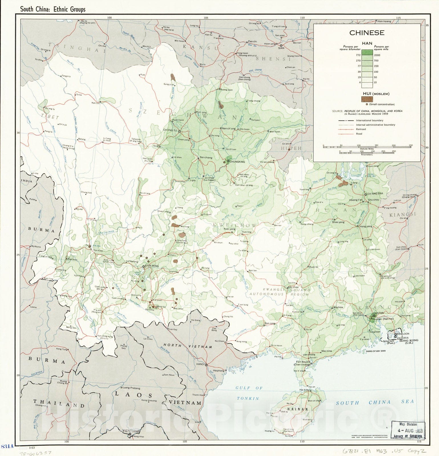 Historic 1963 Map - South China: Ethnic Groups. 3-63. 2