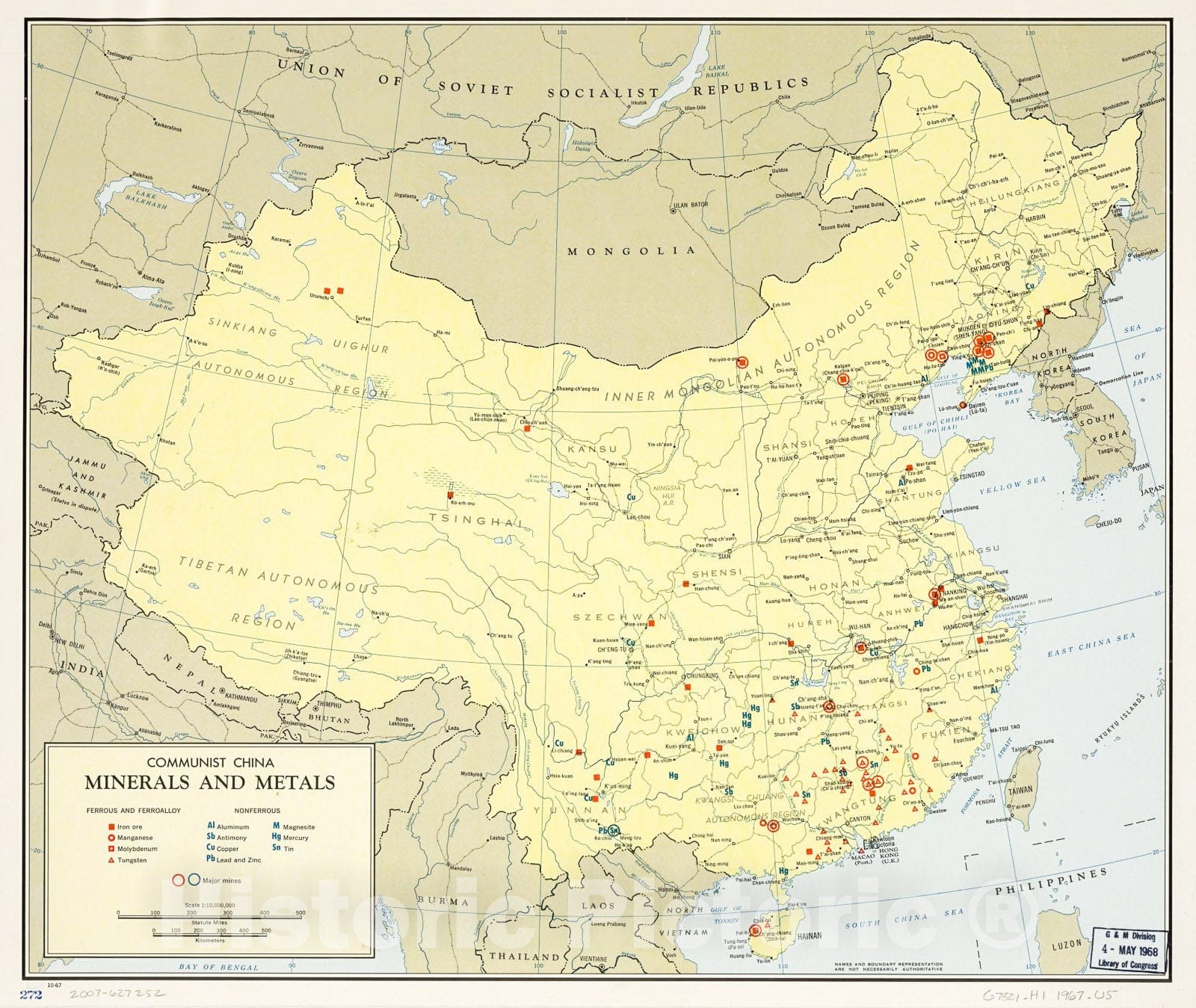 • Historic 1967 Map - Communist China, Minerals and Metals.