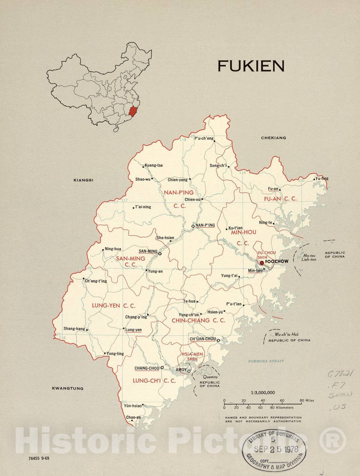 Historic 1969 Map - China, Administrative divisions. - Fukien