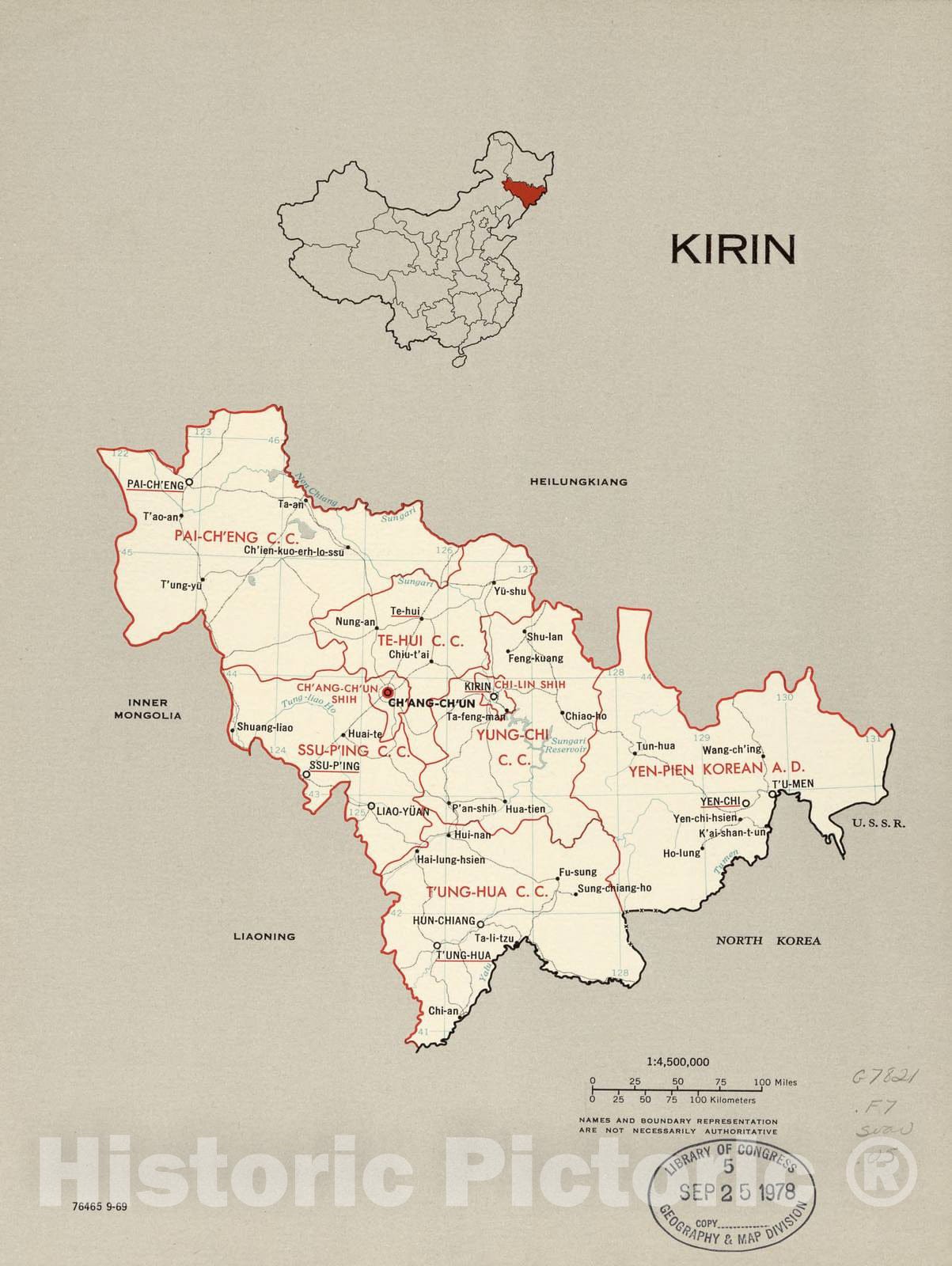 • Historic 1969 Map - China, Administrative divisions. - Kirin