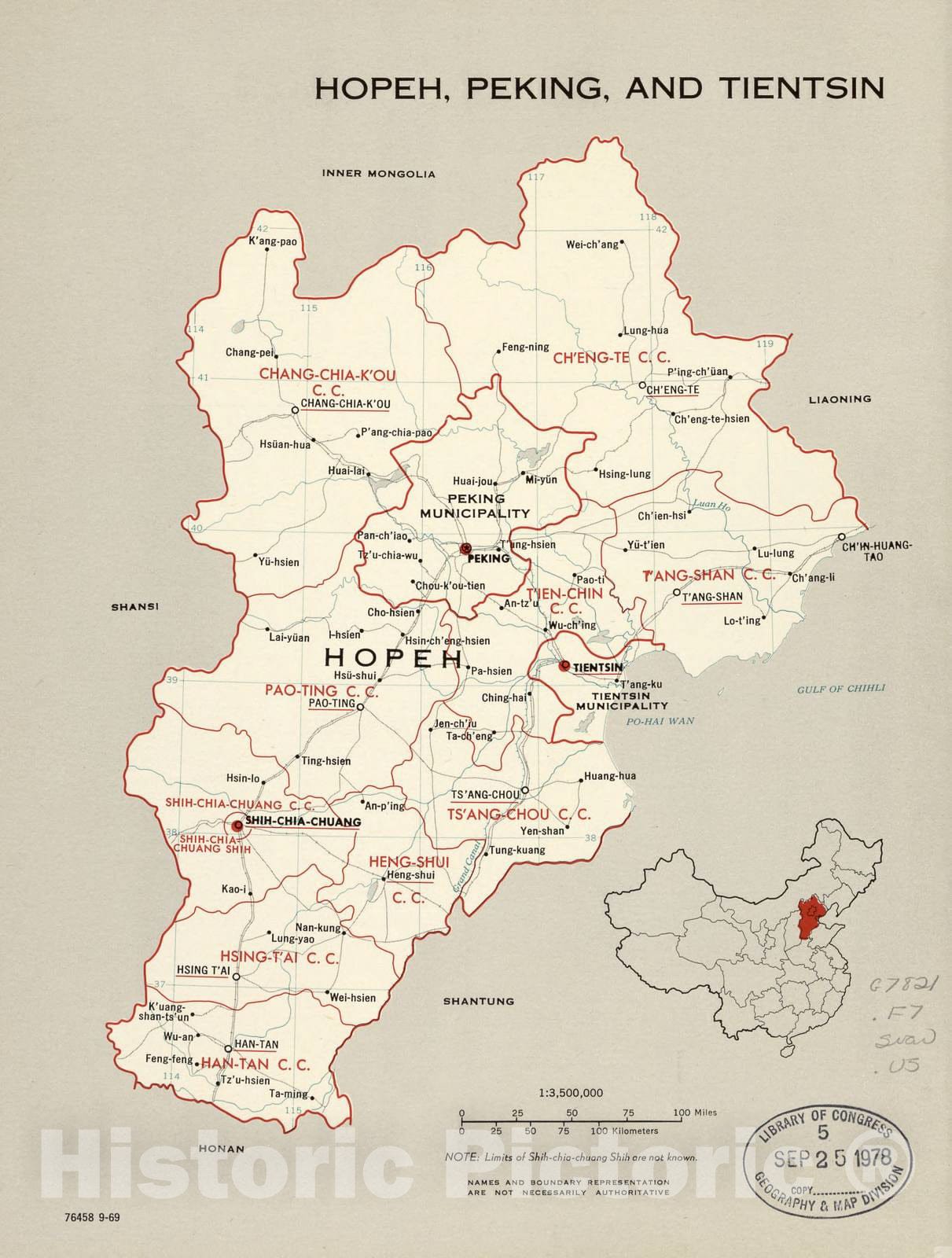 Historic 1969 Map - China, Administrative divisions. - Nopeh, Peking, and Tientsin