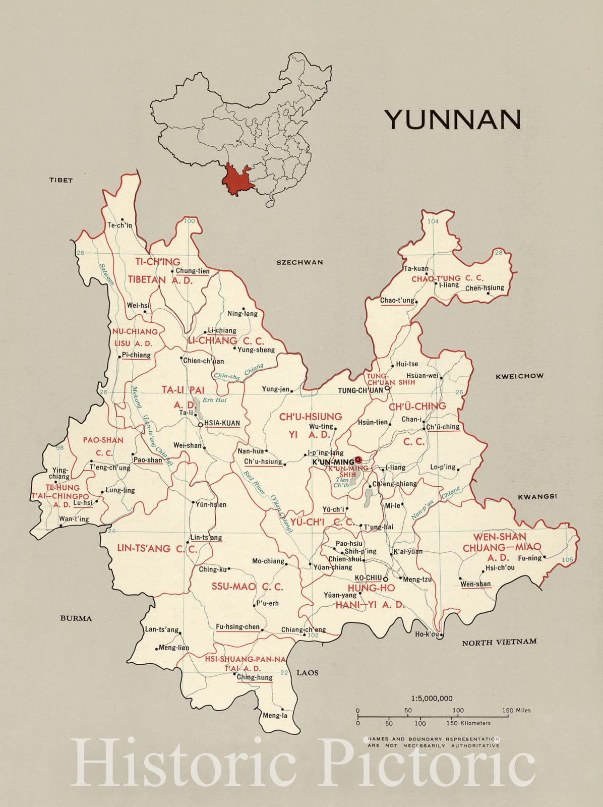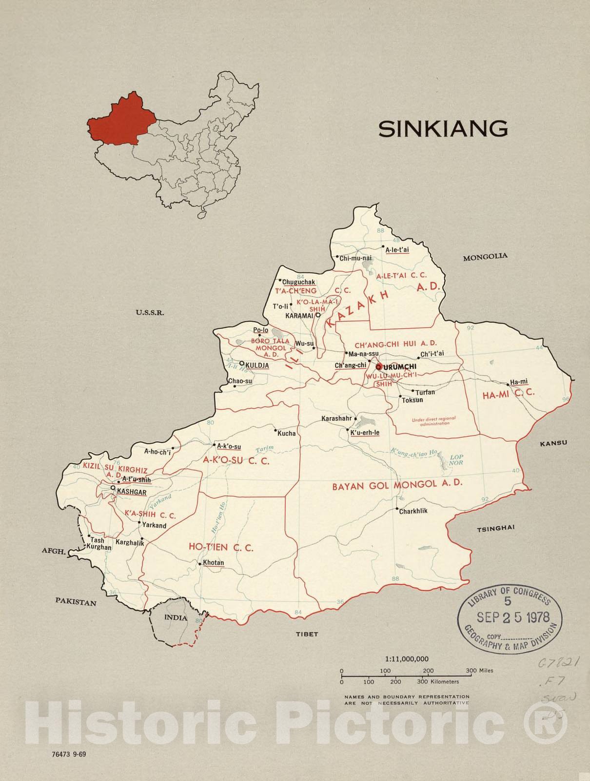Historic 1969 Map - China, Administrative divisions. - Sinkiang