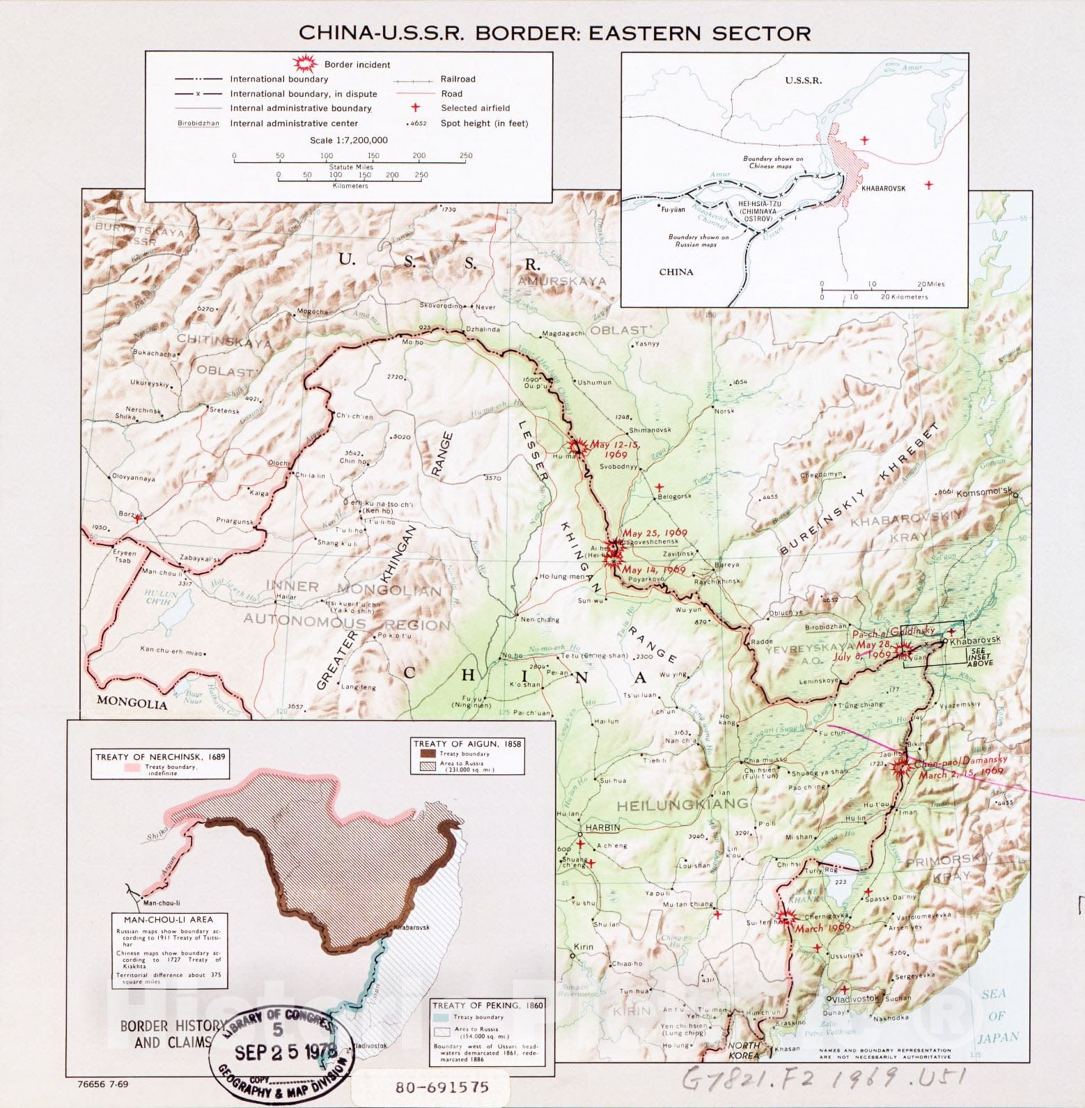 Historic 1969 Map - China-U.S.S.R. Border, Eastern Sector.