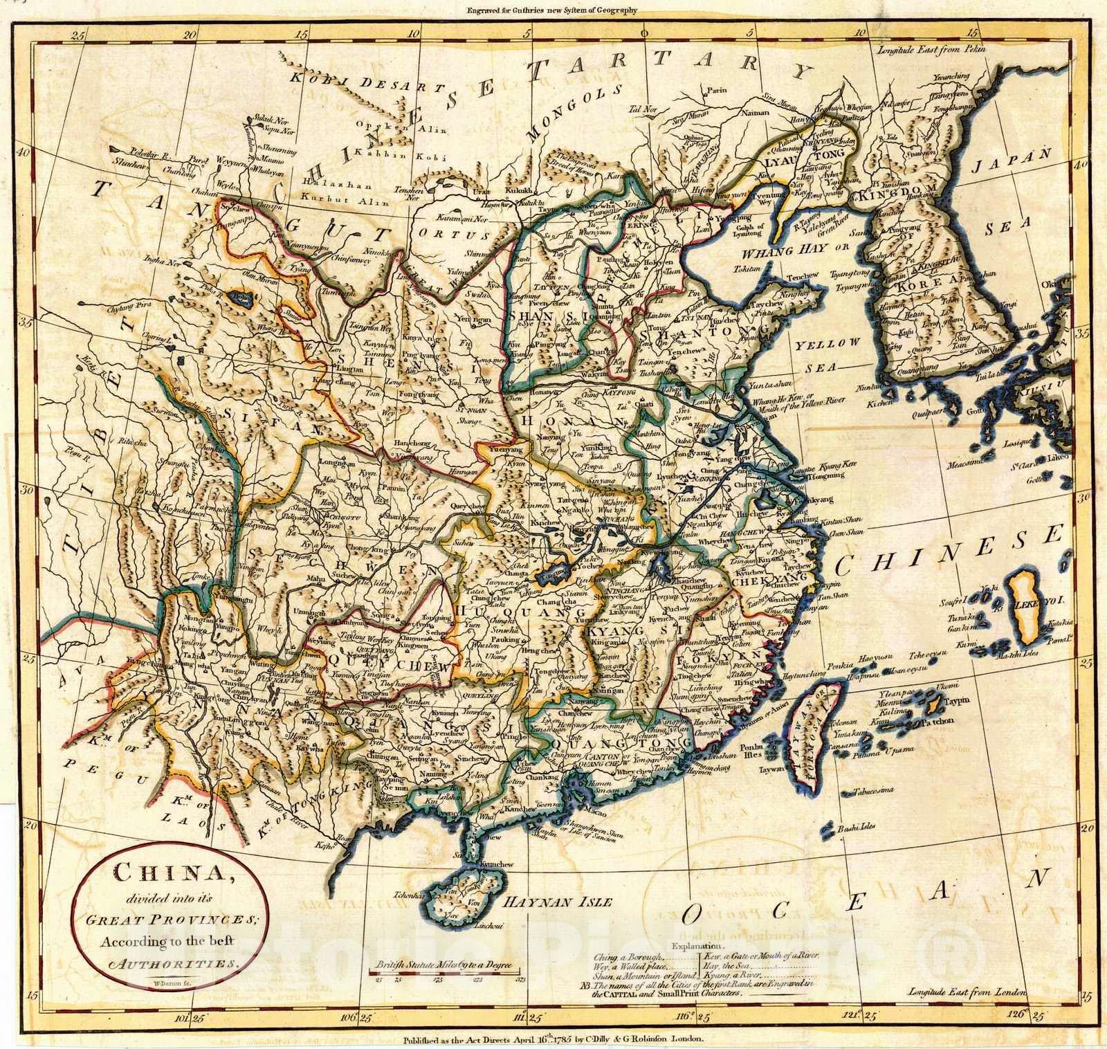 Historic Map : 1785 China divided into its Greater Provinces according to the Best Authorities : Vintage Wall Art