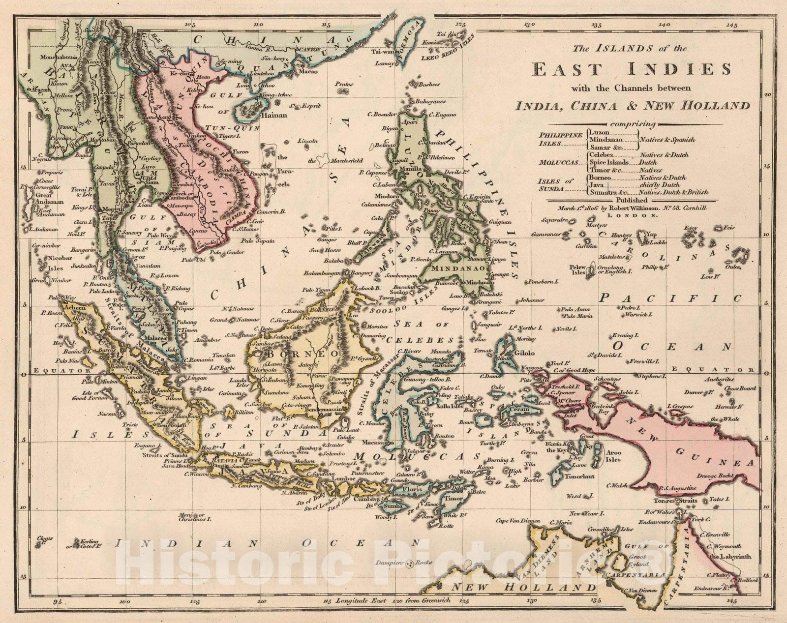 Historic Map : 1806 The Islands of the East Indies with the Channels between India, China & New Holland. v1 - Vintage Wall Art