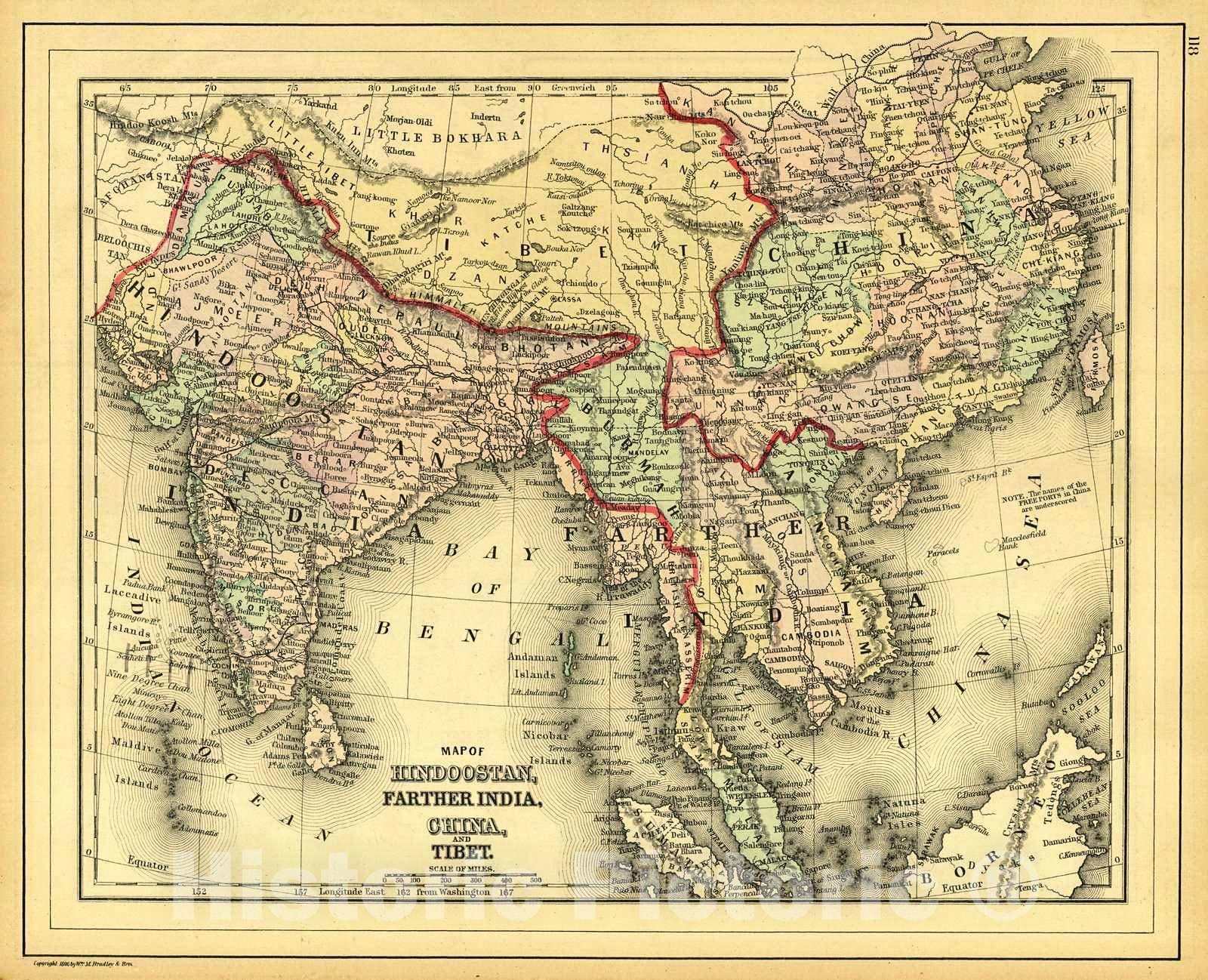 Historic Map : 1887 Map of Hindoostan, Farther India, China and Tibet : Vintage Wall Art
