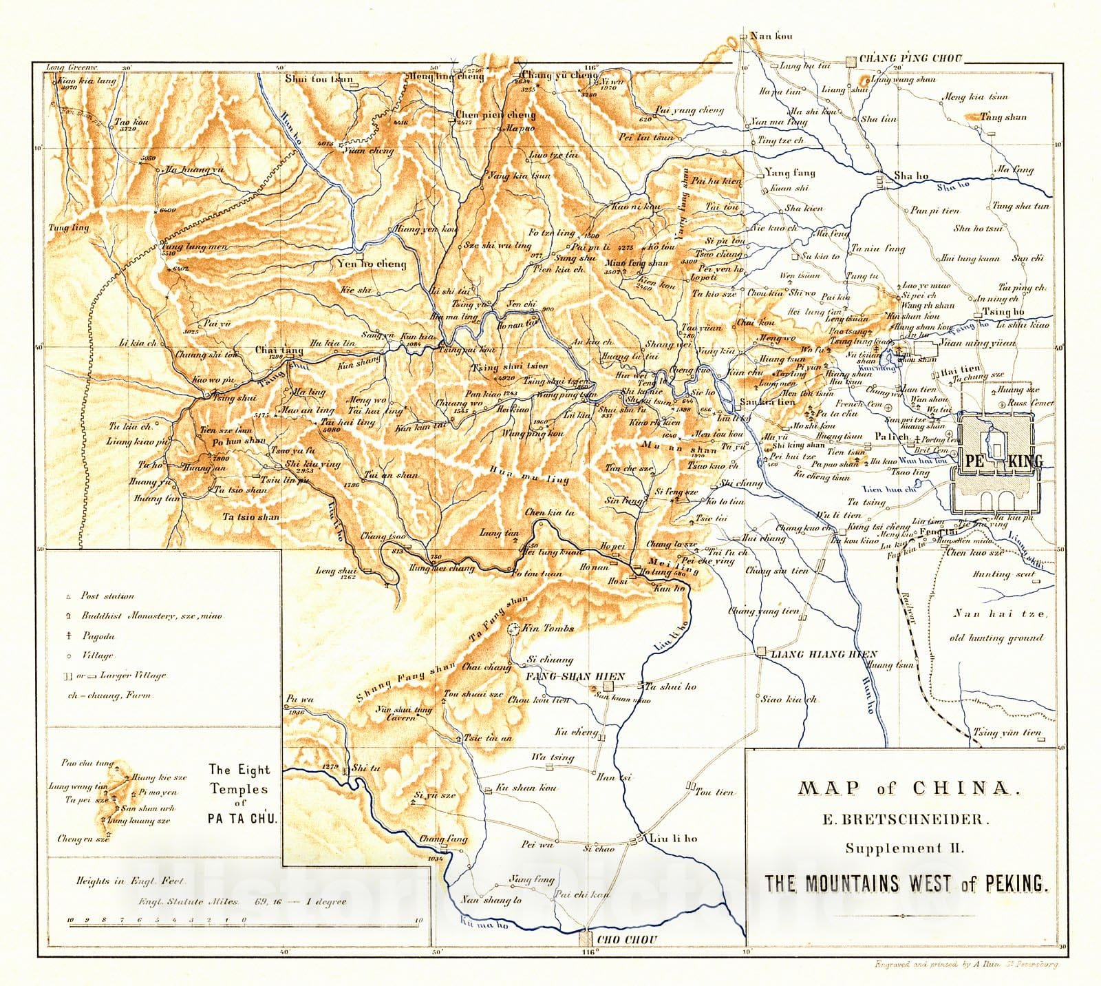 Vintage Map | 1898 Map of China, Supplement II, The Mountains West of Peking | Bretschneider, Emil